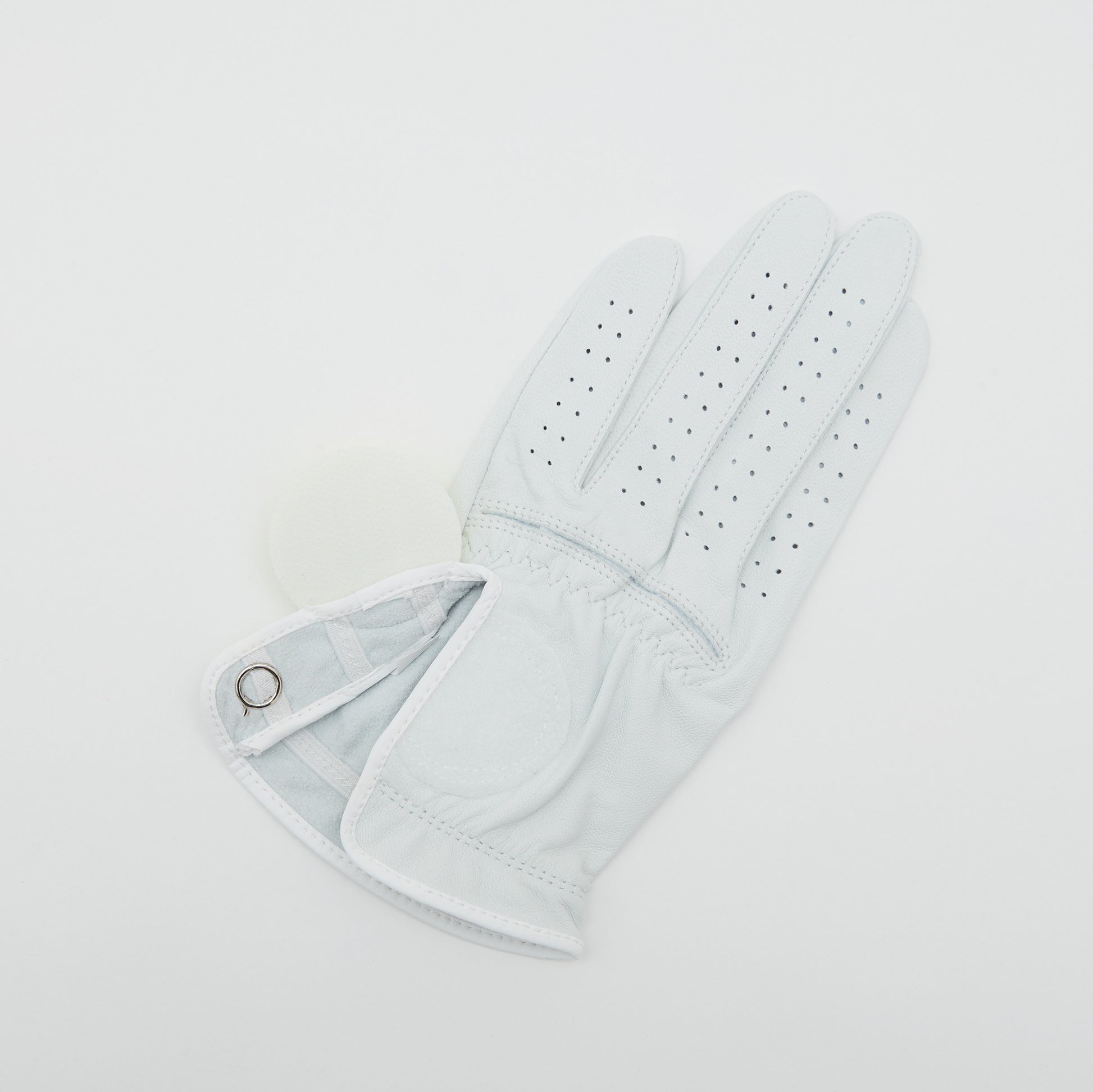 Rubberized logo appliqué at face cool mash panel across knuckles. Precisely sewn dual rows of elastic satin reinforcement at the cuff and thumb. Piv'vee logo button for a Ball marker. Both hands